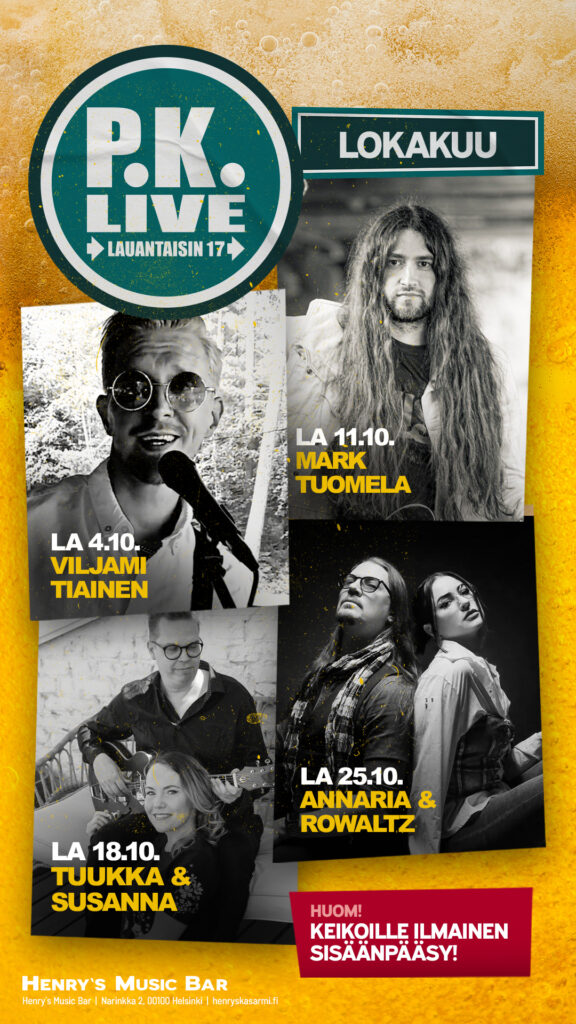 Music Bar on rento kohtaamispaikka, missä rokki soi ja olut virtaa. Laaja juomavalikoima takaa sen, että juotavaa riittää iltapäivän afterworkeista viikonlopun pikkutunneille saakka. Viikonloppuisin huippuviihdettä (baarimikkojemme lisäksi) tarjoilee DJ ja Trubaduuri